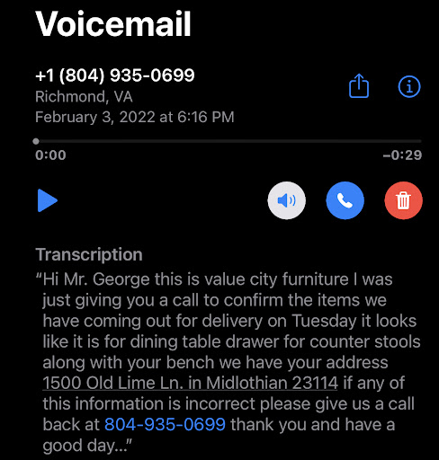 I purchased a dining set at the Value City Furniture in Midlothian back in August 2021. Before I made the purchase, I asked the sales associate “when could I except this dining set to be delivered?” The associate informed me that the set would be delivered no later than November 19th at the time. I was discouraged to discover that this wait would be almost three months until I received the item, but I made the purchase anyways because I wanted to give them my business after shopping at other local furniture shops. I received a call from the store about a week before Thanksgiving and was told my dining set delivery would now be delayed until January 6 2022. This was extremely disappointing as I had planned to host Thanksgiving and Christmas for some of my local family, but unfortunately was unable to do so due to having no dining set. I have no idea why I didn’t just cancel my purchase right then and there, I wish I would have looking back. December 27th 2021 - I receive another call from the store now saying that my dining set which is supposed to be delivered in less than 2 weeks, is now going to be delayed until February 8th 2022. While on the phone with the associate, I politely asked for her to have the store General Manager give me a call. She said that she would do just that and I would receive a call later that week. Today is January 13th 2022 and I have received no follow up call from the store General Manager or any Value City Furniture associate. I feel like my business is not valued and that I have received the short end of the stick regarding my entire experience shopping at the Midlothian location. 6 months I have been patiently waiting for my purchase to be delivered, a purchase near $2,000 which was taken out of my account half a year ago. In this amount of time I have been waiting, not only could I have canceled my order and found another dining set elsewhere - but I could have literally taken a wood shop class and taught myself how to build the dining set. I am beyond disappointed in the service I have received. At the very least, I’d thought the store would offer an in-store credit towards another purchase or a refund of some amount towards my dining set, but nope - nothing… After this experience, I don’t see myself ever shopping with Value City Furniture again. The nicest people throughout the entire process were the delivery guys. With this being said, I highly recommend this company do a deep dive and refine some of their processes to better accommodate their customers. Two thumbs down.