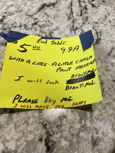 I almost cried when I read what you wrote. I saw that table in a whole new way. I envisioned plants displayed so perfectly. I decided to add this table to the top of my cart, even if it didnāt fit. I didnāt want to risk someone else scooping up this treasure I just came across. I had a lot more browsing to do though. So, I held one hand on the table and one hand on the cart as I shopped. Something caught my eye and I let go of the table and it dropped on the concrete floor. I picked it up, just knowing I broke this table and was still going to buy it. However, when I picked it up, it was still sturdy, solid, not another noticeable scratch (it would be hard to tell with all the blemished it already had). It seemed like nothing happened to it at all. For me, that meant so much. To a lot of people, this is just a table that is old and scratched and seemed āuglyā. You helped me see this tableās potential by one small note that showed the real beauty it could have with just a coat of paint. I did paint the table. I plan to decorate the table with new life and give it a new purpose. I donāt know this tableās history, but I want to. It may have been used and abused, but it was still strong and sturdy, even after I dropped it again! I wish everyone could view other human beings the way you viewed this table. If we saw the beauty in every thing and everyone every single day, it would change the world. So, to you Mr/Ms that spelled ābeautifulā on your sign incorrectly and left it there confidently, thank you. Thank you for showing me that you understand what real beauty is even if you didnāt get the grammar right the first time. Also, I probably shouldnāt tell you this, but I would have paid more than $5.00 for this table just because of your note. There is so much beauty in this world, all we have to do is open our eyes. Iād like to share the before and after photos with you. I wish I would have remembered to take a picture before I started sanding⦠but - squirrel šæ š¤¦š»āāļø. Thank you for...