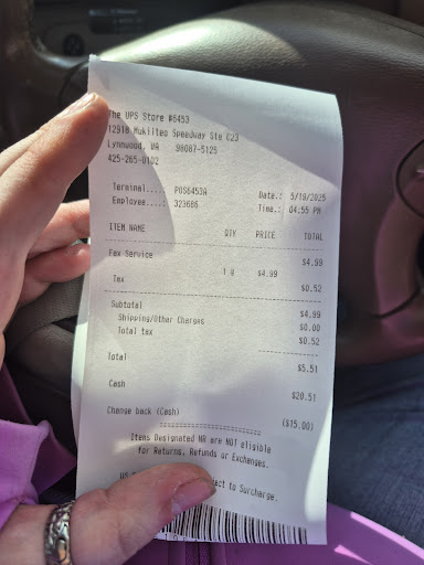 I had the unfortunate experience of going into my local UPS store here on the Mukilteo speedway, and I was beyond baffled at the complete chaos i walked in to. The line to be helped was clear out the front door despite there being at least 10-12 workers, the most of which were fumbling through literal MOUNTIANS of packages, then when I made it towards the front of the line I got to witness and then endure the lack of any sort of actual helpful customer service by any of their associates, But what really got me was the price i paid for my single sheet that was faxed locally. Now, the only reason that I went here was because I had to have a fax sent out by 5 PM. and I could not make it to any other store and get it done in time. Normally I would go to Staples or office depot where when i fax something they always charge me $1 per sheet that I fax. So I was in no way expecting that after my fax went through, and I was being rung up at the register the pretty much clueless employee inform me that it would be just under $6 with tax for my one page that was faxed. I was blown away and actually speechless for a moment, when i regained composure I questioned her to make sure that that was actually the price and she assured me that that was the price PER SHEET To fax things there!!!! I mean I know that everything is going up in price right now but $6 to fax one sheet of paper, it's completely asinine when I can go to a handful of other stores and fax them for a dollar or less a sheet, not to mention that I always get a complementary cover sheet at any other store that I would go to yet, when I asked if there was a cover sheet that I could use at the UPS store, I was told yes, there are cover sheets, but no she doesn't know where they are or how to get one so no I can't have one... again with a great customer service!!! Needless to say, it was my first and will MOST DEFINITELY be my last trip into...