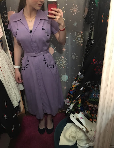 Don't get me wrong; Retro Betty is still my favorite store, but I've been less impressed the last few times I've been there. When I found Retro Betty, it was a dangerous discovery that required a great deal of self-control not to leave the store with an entirely new wardrobe. Everything was cute and solved the biggest problems of modern fashion. A significant portion of the dresses had sleeves and good necklines, the fabric was high-quality unlike the fabrics at most stores that are so thin that every line of what you're wearing underneath shows or that are transparent altogether, and most of the dresses and skirts had pockets. The last few times I've been there, not so much. You'll still find pockets in most of the dresses and skirts, but the fabric quality and modesty of dresses leaves much to be desired. There was one skirt I almost got, but the pockets were too small to fit my phone, and there was a shirt that was a cute style, but if I'm going to pay boutique prices for clothes, I don't want to have to wear a shirt under a transparent shirt. I've also noticed an increase of dry clean only items, which has driven me away from some of the things that have caught my interest. I'm casually keeping an eye on their website, and I'm hoping it will get back to more of the way things used to be when the weather cools down and sleeveless dresses aren't in...