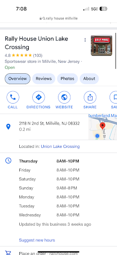 Read moreWent in to purchase baseball apparel. It was my first trip to Rally House and had a wonderful experience. Store was clean and organized. I was greeted promptly upon entering. A gentleman named Joe was helpful and informative of brands and merchandise. It was a very positive experience. Looking forward to returning and using my 20% off my next purchase...