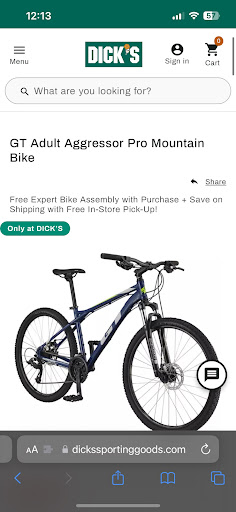 Read moreThis is the worst place to buy bicycles. We bought a diomandback wild wood last year, and we had so many problems with it. On the day we bought it, we realized that the high screw on the derailleur was tight so it would not go on the smallest cog. They put a huge cog before the 6 speed cassette, and Shimano tourney doesn't have enough b screw tention to support that cog. We also had to fix a seat. Soon, I realized that the back brakes broke, so we replaced them, and less then a year after, the front brakes broke. In August I fell of the bicycle when I was going fast because the chain fell off the crank set. Luckily I had a good helmet. On that day I realized that the chain was loose. I could put the chance on the smallest crank and the smallest cog and there would be no tention on the p spring of the...