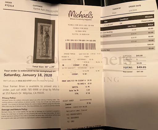 Read moreTue 08.05.25 2:30pm Michael's McCarthy Ranch Dr in a huge strip mall next to the Walmart block, across from In-N-Out, Shabuya, etc restaurants.