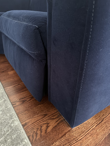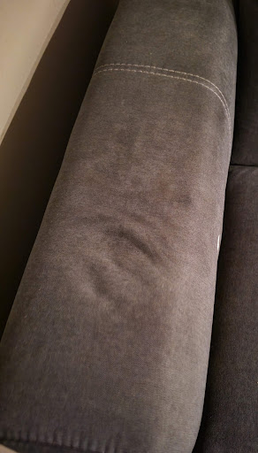 In September, our order arrived, and we scheduled a day for delivering. Their delivering date is not flexible at all. Only one day per week for our area, so I have my parent-in-laws waited in the house. When I got home in the afternoon, I noticed two small cut on the back of the sofa and a discoloration spot. One cut was even repaired in some way, but the cut is still very obvious. I contacted Bachman Furniture right away. Jerry said that I have to talk to the person who works in custom care department. Carrie is that person, but she is not there that day. After several days, I don't hear from them, I contacted them again. I told Carrie what happened to the sofa. She said she will have the delivery guy take a look at it when he comes for delivering another item.