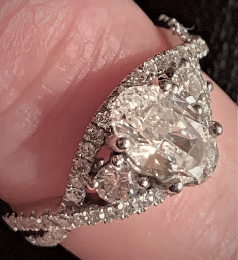 In the photos below, I was fortunate to have another chance at marriage and I came to see Lorry about a ring for the occasion. I had some basic ideas and Lorry found several possibilities to meet the criteria. She was patient with me as I explored various diamond shapes and sizes and gave me room to make my choices instead of pushing something on me. At delivery time, the presentation was classy, the appraisal was ready and the GIA certification was presented. As you can see in the photos the ring was a total surprise and met with tears of enthusiasm. (She did say yes!)