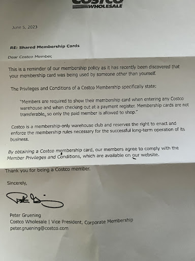 Read moreAVOID SELF CHECK.. Been shopping here 25 years. Currently have just been going with my partner on her card. We can add me again just didn’t think it was a big deal or hurry. This afternoon I went to pick up my glasses alone. After optical I decided to buy one thing we needed. I approach self check and boy I sure wish I had not. Got screamed at to go stand off to the side because the Costco card I was using has her picture on it. He yells “He is using his partners card!”. How embarrassing like I am being accused of shoplifting. Then the “enforcer”. Some huge man named Derrick approaches. I said I don’t want any trouble. I am not on her account and I can just not buy this one item and go. He has me wait anyways while he goes and checks her account. Comes back and sets her card down at a self check off to the side and also a sealed letter. And says make sure to give her this. I said you know honestly I just wasn’t in the mood for a hassle. He then gets very aggressive. Steps towards me yelling “I am trying to help you out here what’s your problem!?”. I ended up telling him I felt like he was being overly aggressive and he said, “yes I probably was”. No apology. I complained to customer service about Derricks aggressive behavior, as I left. So frazzled I put the receipt in my wallet. Breaking the cardinal rule of Costco! I then get hassled at the door trying to leave while I stumble around trying to find the receipt. All for one box of ice cream drum sticks. Is this honestly how you want to treat people!? It wasn’t until I got home I read articles about the membership crack down. I hope it’s worth treating long time customers who have spent thousands like criminals. And do you have to be so aggressive!? Also, look at this absurd letter! It was recently discovered!?...
