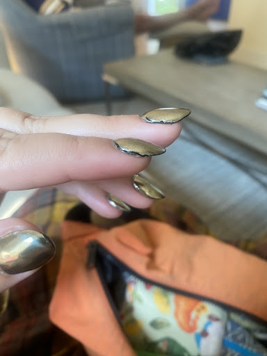 Read moreWent here twice should've stop after the first time. The first time my nail tech talked me into acrylic when I explained I wanted dip. She told me she could do the ombre design and then had to switch to french tip at the last second because she was struggling to do a black to clear look. I was frustrated and disappointed but I was happy with the end result so I tipped well and tried to just remember to ask for a difference tech in the future. I went today for the second time and just wanted to get the acrylic removed and get a mani-pedi with clear polish for a fresh start. The pedicure was great. The manicure was awful. The tech knew I need to get acrylic off I said multiple times while she was giving me a pedicure. But she took no initiative to start soaking my nails for easy removal. She said she couldn't retain my length of my nails and cut them back uncomfortably low. She tried to pry off the old acrylic by wedging a fake press on nail between the old product and then clip off what she lifted. It hurt really bad and I was shocked because I'd never had that done to my nails. I winced through a nail and a half before I let her know that it hurt and she'd need to soak it off or file it down. From that point on she became short and non verbal unless communicating with the other tech. I felt so mad I almost left but she was half way through my service and I just didn't want to fight. In the end my nails hurt and I'm 95 dollars poorer. I wont be coming back for her...