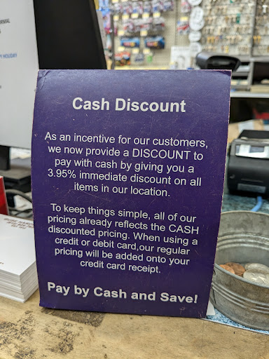 Read moreIt's a small but adequate store. My problem is with the posted pricing. They say that you get a discount when you pay cash, but the posted price is the cash price. So it's not a cash discount, it's a card upcharge, as you'll be charged more if you use a credit card. This is extremely misleading and downright unethical. If you think you're going to get a discount on the price if you pay...