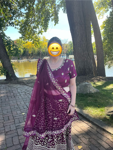 Aunty also altered my saree and when she found out no one near our reception knew how to properly wrap a silk saree, she had me bring it back so she could prep it. She was going to just come to our reception and do it for me until she found out it was 4 hours away! How stinkin sweet!?!! She taught me how to do it, pleated and pinned it so literally all I had to do was wrap it for our reception. She never hesitated to provide a ton of education to us about tradition, attire, etiquette, etc⌠some of which my husband didnât even know! She wanted to make sure everything we were getting was ok with my in-laws and what they preferred given tradition, which was quite thoughtful. She also was trying to get us all in outfits that didnât clash badly in photos and had this in mind without me even saying anything. TIP - If youâre going to her shop on the weekend, be sure to call ahead or make an appt to make sure sheâs there as sheâs often at weddings on the weekends. Sheâll see you outside of her posted hours if you need and is super accommodating.