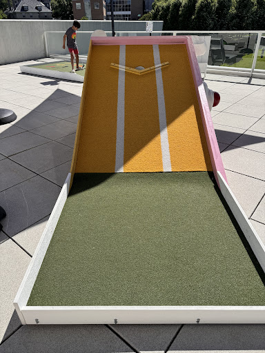 One huge attraction of this mini golf is the fact that it's on the rooftop and there are views all around of the city.