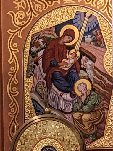 Beautiful iconography at this Ukrainian Catholic Church. Eastern Catholic Churches have such beautiful artwork that deeply inspires our spirit to be raised upwards towards Heavenly Eternity where Jesus sits on the Throne with His Eternal Father.