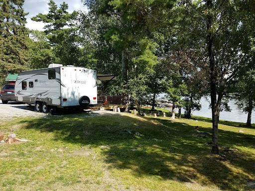The staff at this resort should get a five star. Brandon the dock boy, Brad and Elaine are great. We were camping in a full hook up site up by the fish house. The site was a nice shady spot, however backing into the site up a hill and around some trees was a daunting experience. Also they appear to store old building supplies, dead snow mobile, etc all along the tree line. They have a small beach with some swim floating pads that were fun. The dock area is great but has a lot of chairs and tables crammed in a small area. The resort is in a beautiful bay and it was great sitting on the dock in the evening watching the loons, pelicans, and ducks. The walk from our campsite to the beach was a bit treacherous without a defined walkway. Many rocks, ledges, and tree roots. Our campsite also had much of the same. There are 5 sites in the lower section but a not 'defined' clearly as to where is each site. Some campers were very close to each other. One magical RV site is right on the lake by itself. We enjoyed our stay. We did occasionally have a hard time finding staff to answer questions. There is no store onsite at all. I also had a tough time reaching someone on the phone prior to our arrival. They do not take credit cards. A small family run resort. We stayed a week. The Arrowwood resort is within walking distance and has a bar and restaurant. The Wooden frog campground is also very close. Nice quite area. We personally didn't fish but many people were catching nice walleye and perch. We have Verizon and had consistent 2 or 3 bars the whole week. I don't think there is any...
