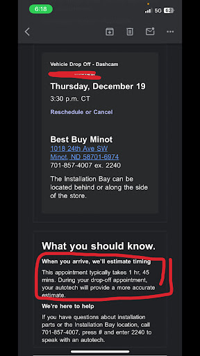 Rant about Best Buy’s geek squad in Minot ND and being an authorized apple repair. Last week we took my son’s iPhone 13 there to be diagnosed and sent for repairs due to overheating and not holding a charge, this was after calling Apple and they said to do this. They couldn’t give more diagnostics other than they were “pretty sure it’s a battery issue”. Cool. Either way, they said they’d send it to Apple because their authorized person to fix it is out on maternity leave and the phone is still covered under apples limited warranty because it was purchased less than a year ago. Said turnaround time was usually 2-3 days to get a phone back because of minot not being the best location for overnight stuff. Fine I get that. My son was getting ready to leave to travel with his grandparents for a month but I can handle a couple days. Fast forward to yesterday, it has been a week since we dropped it off and I’ve seen no movement on the tracking they gave me through Best Buy other than a work task had been created. So I decide to stop down there and see if they can get me something more accurate. Well, they come out and tell me “oh we haven’t even sent it out yet, that’s our bad”. What? Then they explain they were having a hard time printing off the shipping label. For a week? Then they assure me that it will go out today and we should have something in a couple days. I asked what they could do today as I’m not prepared to send my child off through an airport without any way to communicate to us or his grandparents. Their solution, “well you can buy a new phone today and when the repair comes back just return it since you would have 15 days to return.” Not a choice as our son will leave before that and I clearly can’t count on their 2-3 day estimate. They then offered to upsell us a program that would allow us to have 60 days to return the new purchase phone. I’m not dropping hundreds of dollars (even if I would get it back when returned) because y’all messed up. So the only thing they could do to reconcile their mess up was to say sorry. Went back today, and the phone did not in fact go out yesterday as promised. The young lady at the counter today said that FedEx hadn’t picked up from them since Thursday (which honestly seems suspicious for a big name brand chain like this ) and then said they actually have to schedule picks ups with FedEx. This leads me to believe that they just plain out never scheduled for the phone to be picked up. I told them that if it did not get picked up from them tomorrow then I would take it to FedEx myself since they can’t seem to figure out how to do that. Now I have had to send my child off traveling the airports with no form of communication with us because they can’t do something as simple as mail out a phone and if it does get back during his time away from us, we will be in the hole for the shipping to his location, all because they messed up and didn’t even have the good sense to call and say they screwed up. So unless you want to be without a phone for weeks on end, don’t go through Best Buy. You’re better off taking a weekend trip and making the 8 hour one way trip to Minneapolis and taking it directly to the Apple...