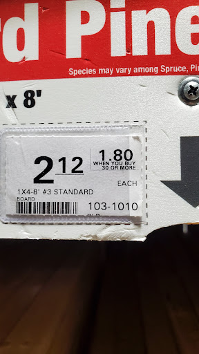 Stopped for some 1x4×8's I was using on a deck project. Regular price $2.12 each. Price tag on display stated $1.80 if you buy 30 or more. Grabbed 30 (didn'tneed 30) went to cash register, price rang up at $2.12. I informed the cashier of the $1.80 price and showed her a pic (uploaded) of the price tag where I pulled them from. Cashier called for assistance and had them check display. Gal from building materials states she can't find that tag. I go back to the display while she is there. She pulled the tag off the display and says that's not the price, there are two other areas where they are marked at regular price. I said you just pulled off the tag that states $1.80 each for 30 or more, and she agreed stating yes she did, the tag wasn't current and she was not giving me the bulk price. I was like O.K. It's not that I wasn't getting the advertised price, it was how she rudely stated she wasn't honoring the listed price. I've never been mistaken for a "Karen", I didn't get her name, and no, I didn't ask to speak to a manager. I shouldn't have to, she, as an employee of Menards, so she represents ALL of Menards. I worked retail for almost 10 years, if we screwed up and left something on sale after the sale ended, we honored the price and weren't rude about it. I probably should have pushed the issue but I was so shocked by her response I really wasn't thinking. Maybe she was having a bad day, I don't know. Cashiers were apologetic and great. I don't know what to say, not mad just really...