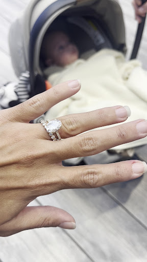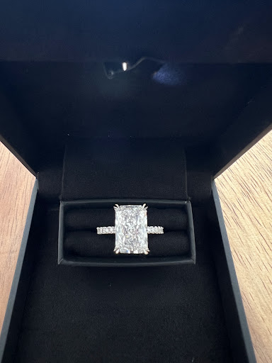 Last month they helped my husband design the most beautiful ring for our 25th wedding Anniversary. He chose a round center stone with a halo, diamonds on the sides, along with an Eternity band. It’s a classic traditional design in white gold that will never go out of style, I was told they custom designed it to meet my husbands request to make it a higher setting so the band can fit comfortably next to each other. It fits beautifully and comfortable. I feel like Audrey Hepburn when I ware it. :)