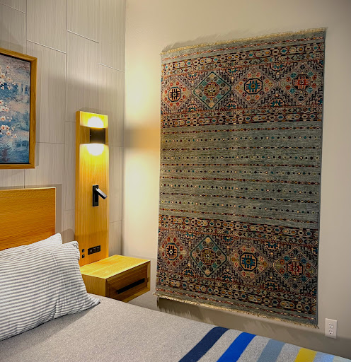 Read moreBeautiful piece of artwork for my floor! The first photo Is with two 32” square card tables. And the chairs are folding as well. As you can see the rug is large enough to hold a table of that length. Up to 108 inches. And the table accommodates a 54” table. The second photo is of the design of the rug without any furniture on it This is a hand knotted wool rug, and the colors are perfect. And the quality is outstanding. Nice short pile, which is what I needed in a modern apartment. Zara Gallery is amazing! I feel so blessed to have had the opportunity to buy my Forever Rug...