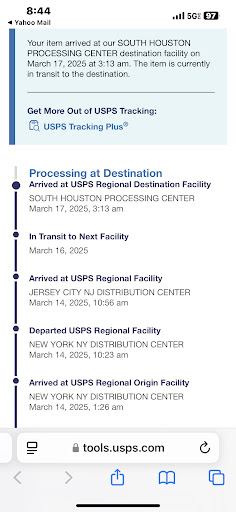 Update: November 9th. Still no package movement or updates. Looks still identical to my original tracking photo posted. Requested and received USPS Refund Claim I filed online. This was a Ground Advantage shipment with up to $100 Insurance. They can not deliver, they can pay. It either never left South Houston Processing center or was lost, damaged on the departure dock. All this package had to do was travel from one city in the SAME state...Coppell, TX to Katy, TX. Literally a 2 to 3 day affair tops. Good luck...