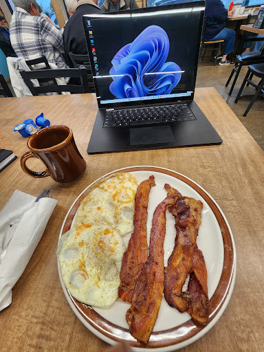 Read moreFood was equivalent to a Huddle House. We expected something better considering the location, style, and efforts made towards decorating and implementing a cute little gift area. The waitresses were arguing with one another the entire time we were there. If one waitress stood in for the other, they would announce their lack of responsibility or that it was “not their table”. The waitresses made us uncomfortable by their demeanor and behavior. And as far as we could see, us and everyone else around us were waiting for at least an hour before being served anything to eat. We would almost always choose an eatery with quality over quantity, but this place lacked both so it was a hard draw. To top it off the staff were petting a local dog that had came inside the establishment and then returned right back to dishing out plates...