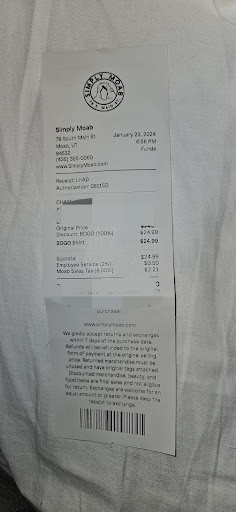 Read morePro: Found a great discount on shirts. CON: The isuue is that a "2% Employee Service" charge (aka TIP) was automatically added to the receipt without approval or authorization. I was told the total, the sale was processed and the receipt was placed in the bag. Had no clue until the next day when I pulled the receipt out of the bag that I had been charged extra. The sales person did nothing but ring up the sale. No advice, no extra assistance, just sat at the counter waiting on us. So sick of everyone wanting a tip for showing up to work and doing what you are paid to do. Plus a terrible business practice to automatically add $$ to a receipt without prior approval....