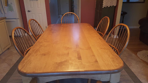 We were in the process of looking for a new kitchen set as our oak kitchen table after 20 years was starting to show its age. There were scratches, cut marks, and an area where nail polish remover was spilled and removed the finish. One evening browsing the web, I looked up furniture refinishers and ran across Furniture Works.
