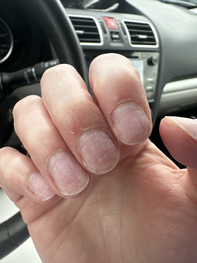 Read moreTerrible experience here, do not recommend. I’m not from the area and picked this place because of the great reviews. I went in for a fill. I told the lady what I wanted done and she starts cutting my nails down. Then she tells me it’s too late for a fill and she has to remove my nails and put new ones on. I know plenty of people who go four weeks between fills. I had waited 3.5 weeks. So then I tell her I don’t want new nails so if I can’t get them filled, just take them off. She tries to convince me to get new nails but I refuse. She then starts taking my nails off with a fake nail instead of soaking them off. After she does three nails like this, I ask her if she can soak them off instead because she’s hurting me. She continues trying to pry my pinkie nail off and makes me bleed (see picture below). She finally gets a bowl so I can soak my other hand off. You can see the different in the picture between the hand that was soaked off and the one where the nails were ripped off. I was still charged the $15 and didn’t even get any oil or lotion...