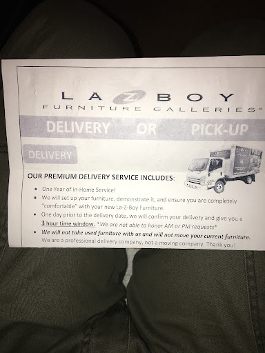 Potential Customers Beware, If you have any issues with La-Z-Boy delivery company the store or La-Z-Boy corp will not take care of the issue, they push you off to deal with the delivery company