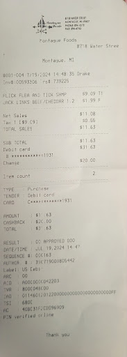 I LOVE the employees. A+++ the BEST people work here. I would give 4.5 stars if i could... Due to no real fault of their own. My heart darn near gave out when the cheapest eggs in store were $4.59 a dozen for large. 😔. I WANT to shop "local". I am also on a budget with a fixed income. Yes you should stop by here for your groceries after looking at the world's largest weathervane. The LARGEST wine and liquor selection in over 30 miles. The attached fuel station has the LARGEST drink selection in the area for "singles". No need to buy a 6pack to try that new ipa/lager/fancypants drink. Buy a Montague Wildcats shirt while...