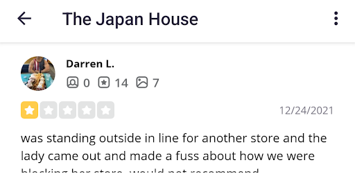 DO NOT SUPPORT THIS PLACE. I have NEVER been so mistreated by a business in my life until I walked into The Japan House. Trust the 1 star reviews on here and on Yelp. The owners are EXTREMELY RUDE!! DO NOT GIVE YOUR BUSINESS OR THE BENEFIT OF THE DOUBT.
