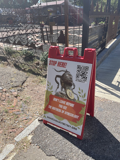 As you walk around the More Up Campus you will see panels explaining the healthcare practices for women of color and how it was predominantly performed by black midwives and was quickly dismantled by white men with influence who believed that science and invasive tools were the best way to care for women’s bodies.