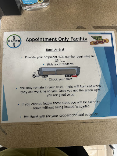 Read moreMonsanto is the best company.We have been to 3 locations already and all of them are awesome. Receiving is by appointment but they took my driver 14 hours before his delivery appointment here in Farmer City. Unloading time around 30 min. Driver is saying he was never treated with that much respect, people who work for Monsanto...