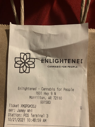 Read moreJust wanted to take time out to thank the staff of Enlightened Dispensary, from the time you walk in the door you are treated with respect and kindness. The guards at the door are so polite and professional. The front desk workers are quick and efficient when it comes to greeting, checking in, making your experience so smooth and easy. Now to our budtenders, every single one of the budtenders has such a positive vibe and personalities to die for. They are educated well on the strains and the effects. Could ask for a better team. One meme er stands out among the rest and that’s Ms. Jamey Whi… the last name doesn’t print on the receipt but she by far has always improved and went above and beyond for me. It’s always a good day when she is at work. Love her to pieces. Over all...