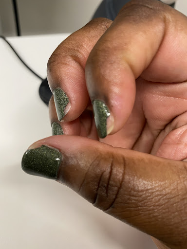 The manicure. The gel that was supposed to be peeled off post product application was drilled down. The buffing to remove was done unevenly. The manicurist nicked my nails one too many times causing pain and switched to manual buffing. At completion some of my nails are left almost paper thin, pliable, and sharp. I opted to just get a clear coat and leave. The polish was applied unevenly and I had to ask for multiple nails to be repainted. The positive of the manicure was that my nails were cut to the correct length.