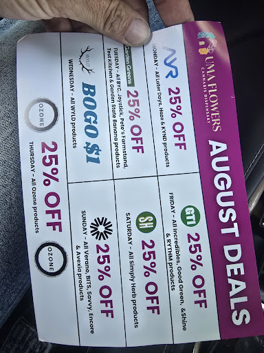 I've been to a handful of different dispensaries both in the area and in other states, and I've never interacted with such a helpful and friendly staff as at Uma Flowers. This was especially pleasantly surprising to me as I went in about half an hour before closing on a Saturday, when I think most people would be just ready to be done with their day. I spoke to Chloe when I first walked in, and then August, Mike, and Tarik were all so pleasant and helpful when I was trying to decide on and place an order at the kiosk, and then when I was checking out. Mira prepared my order and did so super quickly while I chatted with the others. Overall, one of the best experiences I've had at a dispensary. I'm glad they opened! Closer to my home, better prices and deals, and a friendlier staff than places I've gone in the past! Looking forward to frequenting here in...