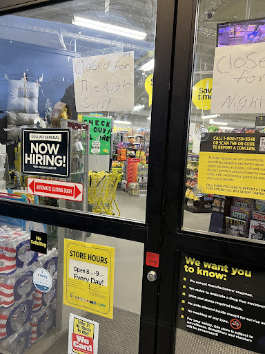 Read moreBelow, notice the DG store hours vs the scribbled sign. This makes it the 6th time this DG has closed up to 1.5 hours early, sending me back home (32 min round trip) empty handed. If staying open until the posted time is too difficult for this location, perhaps an alternative can be figured out and communicated to customers. My rating also reflects the cleanliness and organization of aisles, last time I was able to make it to this store during operational hours. Posted 7/9 & when I left the parking lot, 2 more families pulled in, only to be...