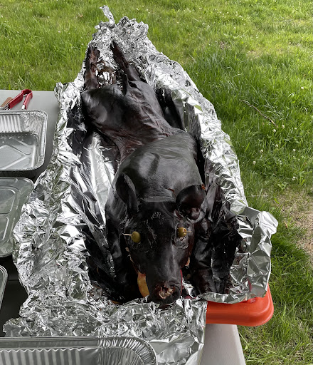 And, yes, the pig was excellent! A few dry spots. But, mostly well smoked and succulent. I, for one, fought for some of the jowls - and was well-rewarded.
