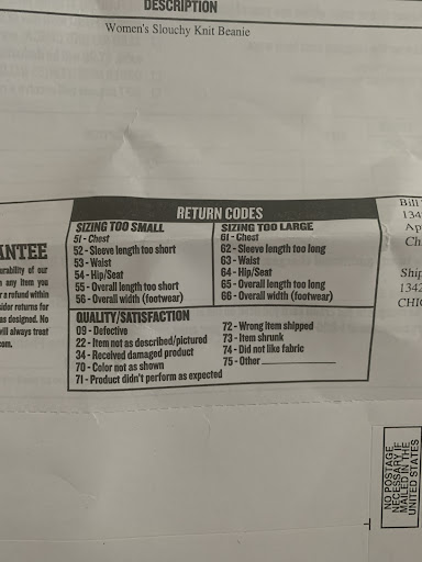 This time I ask the company to send me the XL flannel or give me a credit since I don't trust the postal service. They declined. I asked to speak to a manager and the C.S. lady put me in hold only to say that the check ”was in the mail” and if I did not receive it I had to wait 30 DAYS to issue another check.
