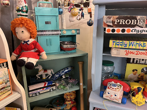 I love this antique store! You'll find a wide range of items. Examples: vintage jewelry (the blingy stuff!) vintage upscale (chalk painted and looks great) furniture household gadgetry advertising glassware (not too much though!)