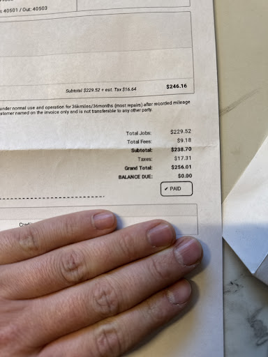 Read morePaid $256.01 for balancing my tires. Not mounting and balancing, or replacing tires, just to road force BALANCE my tires, and no, they didn’t spin them. Also what was the random $9 fee on my invoice for? Steering wheel still shakes. They didn’t bother to test radial runout (in fact, they didn’t know what that was, which is arguably worse for a shop charging $256 to balance tires). The manager told me on the phone they charge more for a larger size tire because it’s more work for the mechanic… Guy didn’t know what the coarse and fine stages were on a hunter machine either, another eye opener.