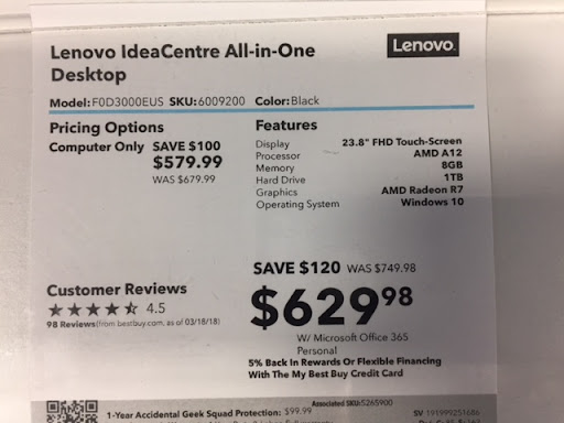 Read moreAlways a big fan of Best Buy. Recently I purchased a Lenovo computer advertising that it included a one-year subscription to Office 365. This is what convinced me to purchase this product. Upon configuring the PC I found no Office 365 included. Quick drive to Best Buy where Sales Rep Austin explained that it is included but for $50 more. He did his best to explain that its included but there is an additional cost of $50. This isn't noted anywhere on the product spec's tag. I asked why this wasn't explained at the time of purchase. He ventured that most likely a sales rep from a different department sold the PC to me and that he wasn't aware of the additional cost to the included price. Supervisor Anthony also offered that a sales rep not familiar with the technology section could have made the sale. He told me I just cant give you Office. As far as I was concerned I paid for it once already. The PC I purchased was found by the original sales rep as I had requested his assistance in finding one with Office included. We discussed many different models before selecting the one I ultimately purchased.