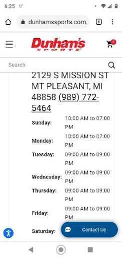 Didn't close at 7 on labor day like it said. Closed early at 6. Walked right in at 6 to get a deal and they told me they were closed. Not the first time this has happened. Just cost me a tree stand and 40 bucks. Girls were not helpful at all behind the desk. Didn't have the doors locked or anything so I walked right in and they saw I was carrying something to wheel the big tree stand box back with. I walked there with it and I was planning on walking the thing all the way back to my place. Just lost a good customer who spends thousands annually in ur store. Even says right here on the Dunham's website and on Google that the mt pleasant location closed at 7 for labor day. The girl I talked to on the phone right after I left was completely unhelpful and disregarded what I said completely. Someone decided to close the store early because they weren't busy I imagine. Edit: different manager made it right. Said the other manager accidentally printed off the wrong labor day work hours. Got the labor day deal and I'm super excited to try out my new stand this season. Just went in the other day because they said they had a certain style of boot I wanted in stock in my size. I get there and they only have 2 pairs out a 9.5 display model and a 13. Had to walk up to the front to asked for help in the shoe department. Waited on the employee to walk back and help me. I asked her if she could check if they had anymore in stock and she looked at me like I was stupid. Wouldn't even bother checking even after she asked if I got it from a front table . Didn't even look and see what style of boot it even was. She had absolutely no idea if they had anymore or not and she was too lazy to walk 15 feet back and check. Sucks this is the only place to sometimes get decent hunting stuff in Mt pleasant. I really wish this store was better because then I would walk over and spend money all the time. It's just the complete lack of respect and level of work the young employees are willing to put in. It's like this every single year because it's always a group of new college kids who think they're to good for working at Dunham's. That or they're just completely lazy...