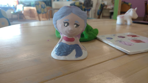 I went here when I was out with nothing to do waiting for my boyfriend's family to come. The lady running the place was amazingly kind and patient with my grandiose and ambitious concepts for my mermaid and helped me out, and helped my perfectionist boyfriend get the results he wanted too. There are examples of the glazes on the wall fired so you won't get your colors ruined. She has bases for smaller items, but the larger things are done herself, which is completely amazing to imagine. There's a very calming atmosphere and she's very good with children. She's always around or willing to come help if you call for her. She even is shipping our pieces to my boyfriends house and is painting my mermaid's rock because I didn't have the time. It was great, and if you have time, absolutely go. Pre-glaze photos. ...