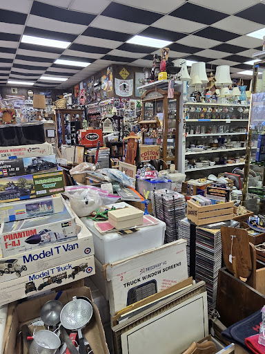 This is one of those places you will have a hard time leaving without something. The astounding amount of things here is mind blowing. I will give it a shot to give you an idea of things you will find. Here goes. Magazines of about any subject matter, dishes, glasses, cookware, collectibles of sports, antiques, toys, books, comics, records, cards, figures, model cars, die cast cars, signs, tools, knives, lighters, pop culture, games, cups, leather jackets, playboy Magazines and more like, records, pins and it just keeps going. Be patient not everything is priced because of the sheer magnitude of things. The lady who owns it is very nice and helpful. Make the trip because you will...