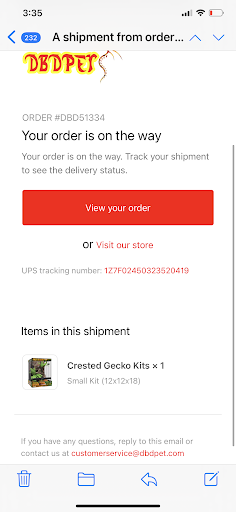 I’m very disappointed and I’ve got hungry reptiles and amphibians. I’ve kind of given up on trying to get any reasonable response from DBD pet about my feeder insects I ordered almost 3 weeks ago. I made my first ever order with them on April 15th after normally getting a bunch more feeders from rainbow mealworms which I never had issues with, but thought I’d try these guys with a smaller order (about $65) instead since I met them at an expo and they seemed very nice and they were located closer for shipment and I like to give my business to nice people! I needed my address updated which they did timely the next day on April 16th-great! They also offered the info to me that my order would go out Wednesday(18th) or Thursday(19th). Cool! Well I didn’t hear anything for a while again so on April 25th I wrote them asking about where my feeders were? They responded same day telling me because I ordered Nightcrawlers they have to wait for them to get in stock to ship everything at once. They said they should be in today or tomorrow and they would ship them the same day they are received. It would have been nice to know that the nightcrawlers hold up orders, But ok now I knew for future orders since it was my first time ordering. I’ll just have wait another day or two like he said...they will be in... well on the night of the 26th (since they said today or tomorrrow on the 25th) I had not news again so I emailed asking if they had been received yet. I never got a response, so on the 27th I requested a refund of my order and to cancel my shipment. I never got a response. On the 30th I got an email saying “Your order will definitely be going out today and we deeply apologize again the order was thrown off due to the expo we had last weekend and the euros you ordered”. I mean this all sucks. I didn’t know about the nightcrawlers so ok, but now because of an expo I have to wait longer? Where is this in the shipping info? I’m about to leave for vacation and have gone to nearby stores to get small amounts of insects to get us all by and I just want to make sure everything was all set before we leave But again I chill out and say ok that’s ok they are going to ship out today (the 30th). I get a notification on the 30th through DBD pet that my order was shipped, but then on May 1st I received an email from usps that a label was created for my shipment? But it had not yet shipped because usps has not yet received the items (the feeders) to ship. On May 2nd I see that the items were received by usps and THEN shipped out. So... I leave tomorrow (May 4th) for vacation in the morning and still haven’t received my insects... I now have to see if my pet sitter will get them from the post office and take them out of the shipping containers and put them into where I hold them, which of course is additional time I have to compensate her for now too... I am so so disappointed and kept trying to give them chances and even through all this can’t give a 1 Star because they at least responded to me a couple times and were nice?....but really... I had even selected on April 15th the “Ship my in stock items within 5-7 business days, and cancel/refund my back ordered products. The refund will be given as in store credit.” But that was completely ignored. I’ve tried being polite so many times with no real reconciliation or good explaination that I just felt my only option was...