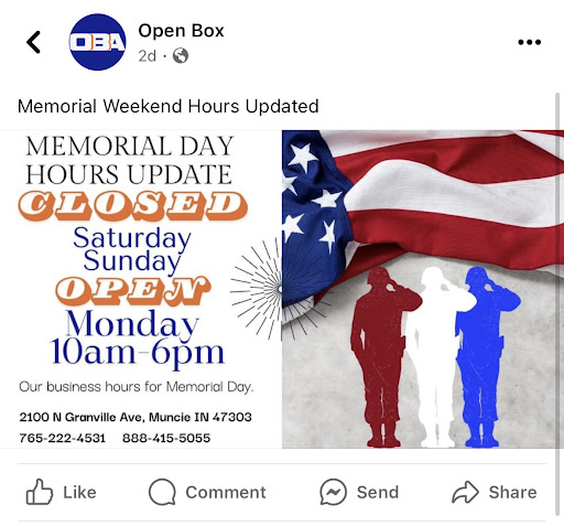 Very disappointed with this store. We are from northern Indiana, and saw a listing through Facebook marketplace for a tub we urgently needed for a bathroom remodel. I called the store Friday May 24th, to confirm they still had the tub in stock. I also asked several times if they would be open Monday, May 27th. They confirmed they would be! They also posted the image provided on Facebook for updated holiday hours. We arrived at the store, Monday morning, only to see a paper on the door with doors locked, explaining they will be closed for Memorial Day. I understand being closed for a holiday, I don’t understand why they never listed anything via social media to update or why they told me only two days before they WOULD BE OPEN. We drove almost two hours to pickup one of their products, after several messages and phone calls, I haven’t heard anything back. Other customers arrived while we were there, also disappointed in the unexpected closure. As a business owner myself, I understand issues and mistakes happen, but I have yet to see any effort in them to make this right for us or even a simple apology. I would be happy to delete this negative review, or change my opinion of the store if they were to try to make things right. As of now, I don’t recommend purchasing from them. If you do, make sure to call and don’t...