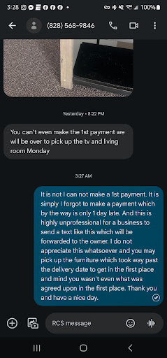 My business started off the worst back in October 2024 when Anthony was the manager, I was lied to, didnât get all the pieces, took 3 days to even get all the pieces to my sectional, prices changed, tried to double charge me, I even tried to get him to come get his stuff outta my house because I couldnât use part of it because it was missing parts and was told repeatedly they would fix it. Was then threatened with âlegal consequencesâ because I refused to pay for something I couldnât use and demanded they come pick it up and waited to be served legal paperwork and had to block the stores number because Anthony wouldnât stop blowing up my phone and being hateful along with his employees and lying. Claimed I damaged the furniture (was used in rough shape when I got it) not realizing I took pictures of the damage when it came into my home. I was just biding my time for the 90 day mark to file it as abandoned so I could get rid of it and be done with anthony. Fast forward to January and Joe comes knocking on my door and my experience did a complete 180. Joe fixed my account, got my payment where it was supposed to be, wiped the past due that occurred waiting on them to come get their stuff, and made my account current as well as went himself and purchased the parts needed to use my bedroom set. How has been an amazing transformation to this store. I highly recommend anyone that needs anything to see Joe, just be patient with your stuff being delivered as most days heâs working by himself and doing the best he can but will treat you right. If you need furniture or electronics: go see Joe and let...