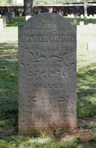 Lost and Found. While studying genealogy, I learned I had a great-great-great grandfather that died in a battle in Franklin, TN, 30 Nov 1864 (His remains were moved here in 1865 as many that died in middle Tennessee battles and the nearby Stones River Battlefield across the street.) I am the most recent family to visit his plot, and the first in likely a century or more. My grandmother never spoke of him, so maybe she didn't know of his service in the Civil war.