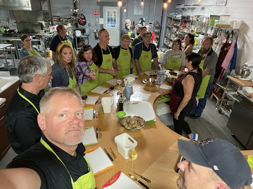 I too attended the German cooking class with my husband. This was our first cooking class ever so we weren't really sure what to expect. Helena and staff Tyler I'll call out by name because he was very helpful were amazing. We were delayed a little at the beginning because some other students didn't show at the required time. No biggie there was plenty of German beer to go around. Also we brought whiskey too. It is BYOB after all. The class is at Max capacity at 13 people. It was extremely fun. Everyone got to watch as she went over the recipes and then split up tasks. After all it's a class of 13 so no you're not going to cook just your own personal meal. You help prepare different portions of the meal. Some cutting apples, some frying pork chops, some chopping cabbage.. you get the idea. It is necessary in order for the entire meal to finish on time. Think about if you had to make every item by yourself. By the time the main course is complete your appetizer might be soggy ...get it. The meal was absolutely amazing. Including dessert!! The chef was so knowledgeable and friendly. You are also emailed all the recipes after the class as well. Huge bonus!!! We enjoyed it so much we booked the pasta making class and brought by brother and his wife as a gift. Again that class was just as amazing. You will not be dissapointed with any of her classes honestly. Yes you will have to stand beside other people and yes even sit beside them and eat dinner but it is a class open to the public. This isn't a personal cooking class for just two. By the time dinner was servered we had already made friends with the people who we cooked beside. Great way to make new friends. Bottom line you can't go wrong with curious kitchen. We have and will continue to go back. Thank you for a fantastic...