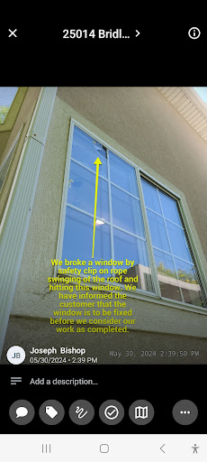 Read moreOne team member of a roofing crew working in West Jordan had a safety rope with a metal clip swing and unfortunately break a customers window. Because the frame was aluminum there were only 2 companies in the valley qualified enough for the replacement without having to fully remove and replace the full window with frame.(stucco damage and fix)