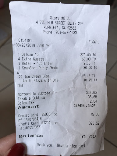 Read moreThe worst!! Never will I have a party here again. Staff was rude the minute we walked in the door and gave a problem to every guest in our party that attended. When I was filling out the waiver the work rudely put his hand in front of the laptop and told me to stop typing. And, we were then given quick short directions to the room we were supposed to be in. All of the guests that attended had the same experience. Rooms were extremely hot until we reached the last room they finally turned the air on. And, worst of all there was on older women named Elsa that went around rudely scolding our guest. At one point one of the kids in our party was accused of not filling out a waiver the worker approached the parents rudely with his laptop.. seriously we would be treated better in jail. Over the whole situation I went to the front to speak to a manager and she approached me rolled her eyes several times at me and asked what was my problem I said her rude approach to our guests were not appreciated and that her attitude was awful she then again started to roll her eyes at me with a smirk on her face and claimed she was talking to our guest nicely. I have never in my life paid for a party and getting treated like we were unwelcomed and being a bother. And, of course knowing we were unhappy never was apologize to just asked us to spend more $$ to buy the photos they took and wanted a tip. We will never go back and all of our guest talked about the awful experience they had there and would never attend a party there again. Save yourself the $$ and book somewhere else.. seriously a bunch of fun suckers and ruined it for my grandsons...