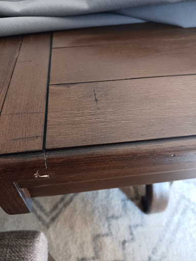 My dining room table was delivered with a gouge and scratches that was not on it at the signing of purchase contract. Also 1 of the straight back chairs was not delivered . I was told the 1 chair was damaged during loading the product and that 1 will be delivered whenever they get 1 in the store . I was not given an estimated time of delivery of the 1 chair still due to me. No one has made any attempt to apologize for the inconvenience or attempted to reach out to give me an approximate day of delivery of chair still due to be delivered to me. So in as much ,I'm not very happy with the service I received. I think I deserve better service for the money I'm spending for the dining room table and chairs than what I received. If the table had been damaged prior to me signing the purchase contract, I would never have...